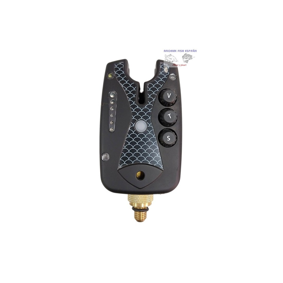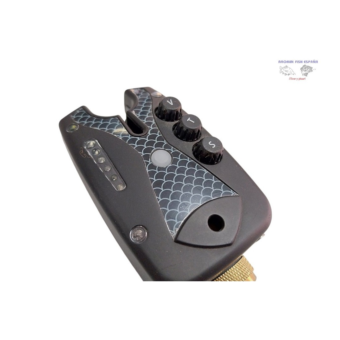 - Cadena de led indicadores de picada. Corre hacia arriba si es picada delantera y hacia abajo si es trasera. También indica nivel de tono, volumen y sensibilidad.