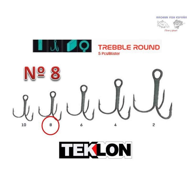 Los anzuelos triples Teklon PTFE Treble Round, están afilados con laser y recubiertos de PTFE.