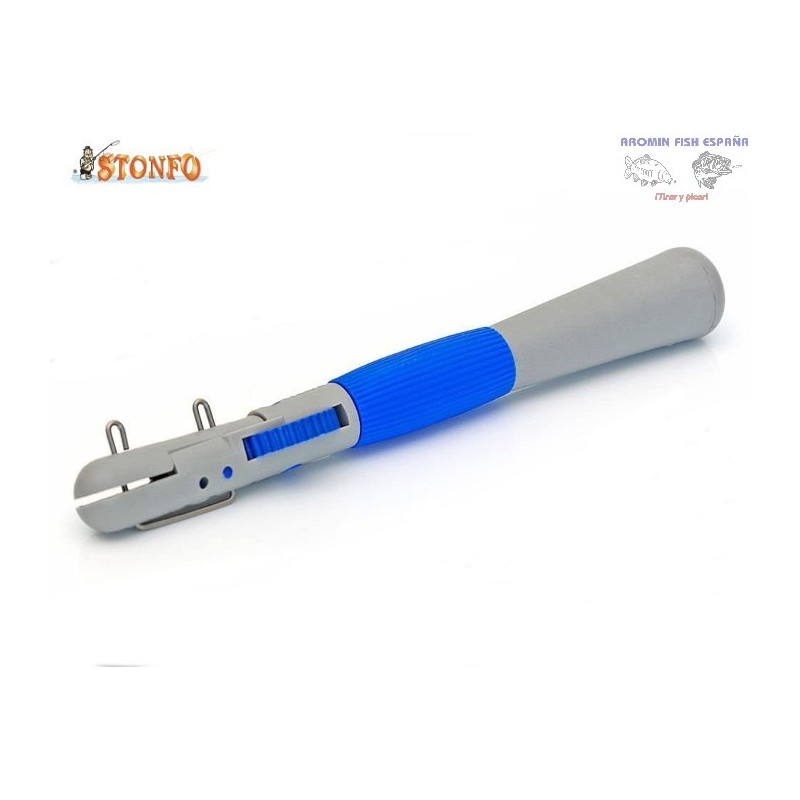 Maquina manual para atar anzuelos con empuñadura de goma producida en dos tamaños diferentes: el pequeño tamaño se ha diseñado para unirse fácilmente pequeños anzuelos en la medida nr. 14 a 28, mientras que la grande es adecuado para anzuelos de nr. 6 a 18.