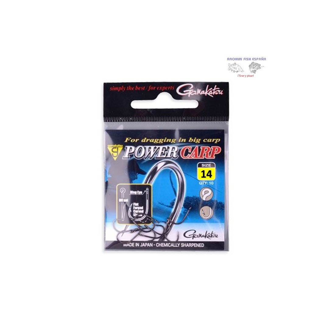 Los anzuelos Power Carp de Gamakatsu son anzuelos especiales de tipo off-set que son la opción ideal para la pesca con cebador, con caña y para la pesca de grandes peces. Los anzuelos Powercarp tienen un muy buen agarre y también están equipados con una punta de anzuelo ultra afilada.