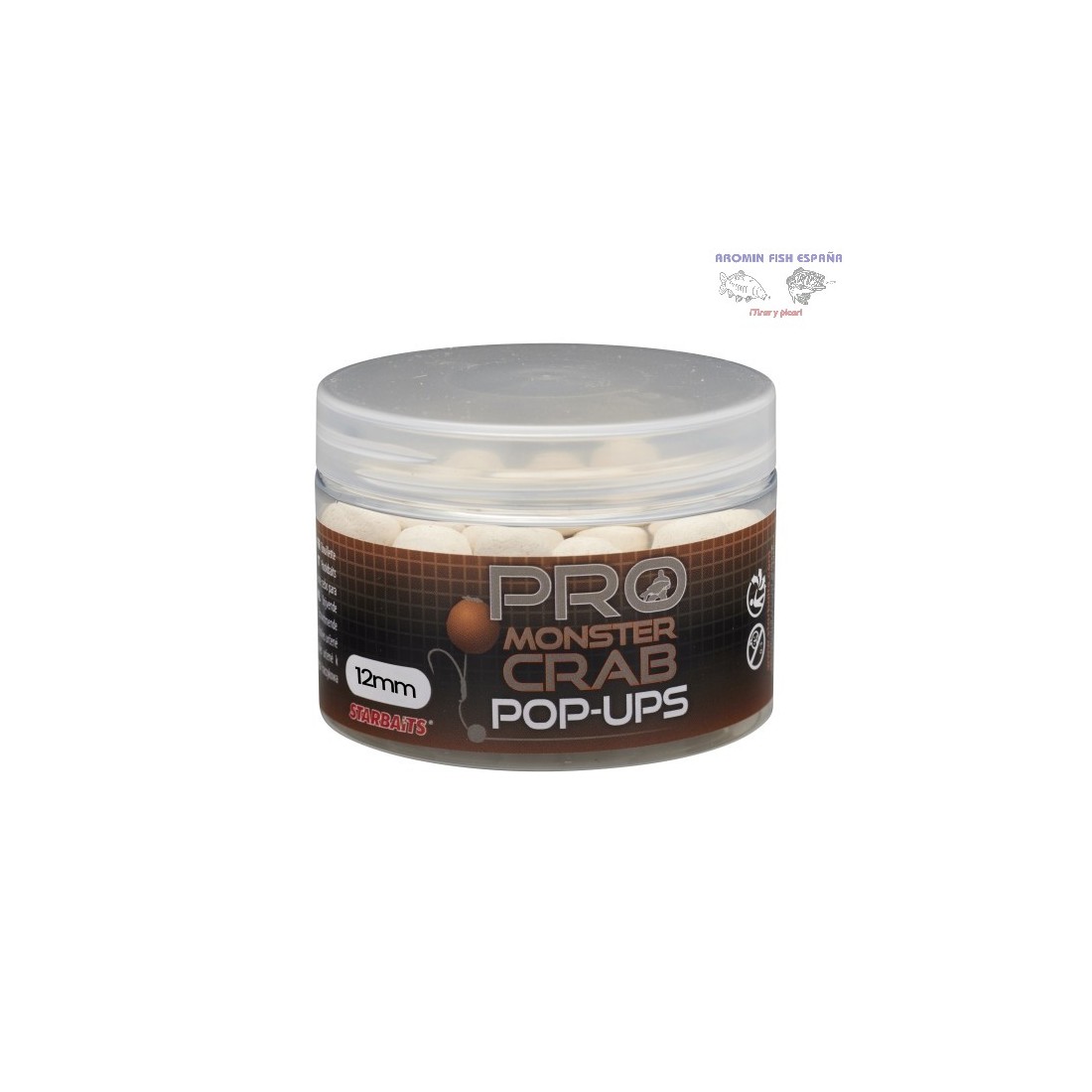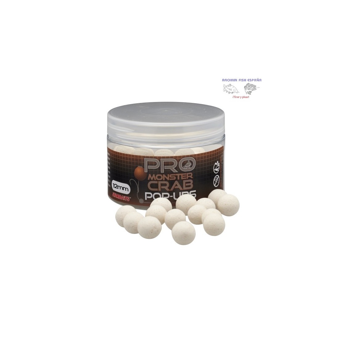 Bolas proteicas flotantes con sabor a cangrejo de Starbaits. Esta serie ha sido creada con aditivos como betaína, levadura, extracto de hígado, aceites y otros aditivos especiales. Los pop ups con olor a cangrejo funcionan perfectamente cuando se combinan con un boilie de hundimiento con olor a cangrejo para crear un "muñeco de nieve" que destaque en el fondo. Esta serie de cebos funciona muy bien tanto en aguas frías como cálidas.