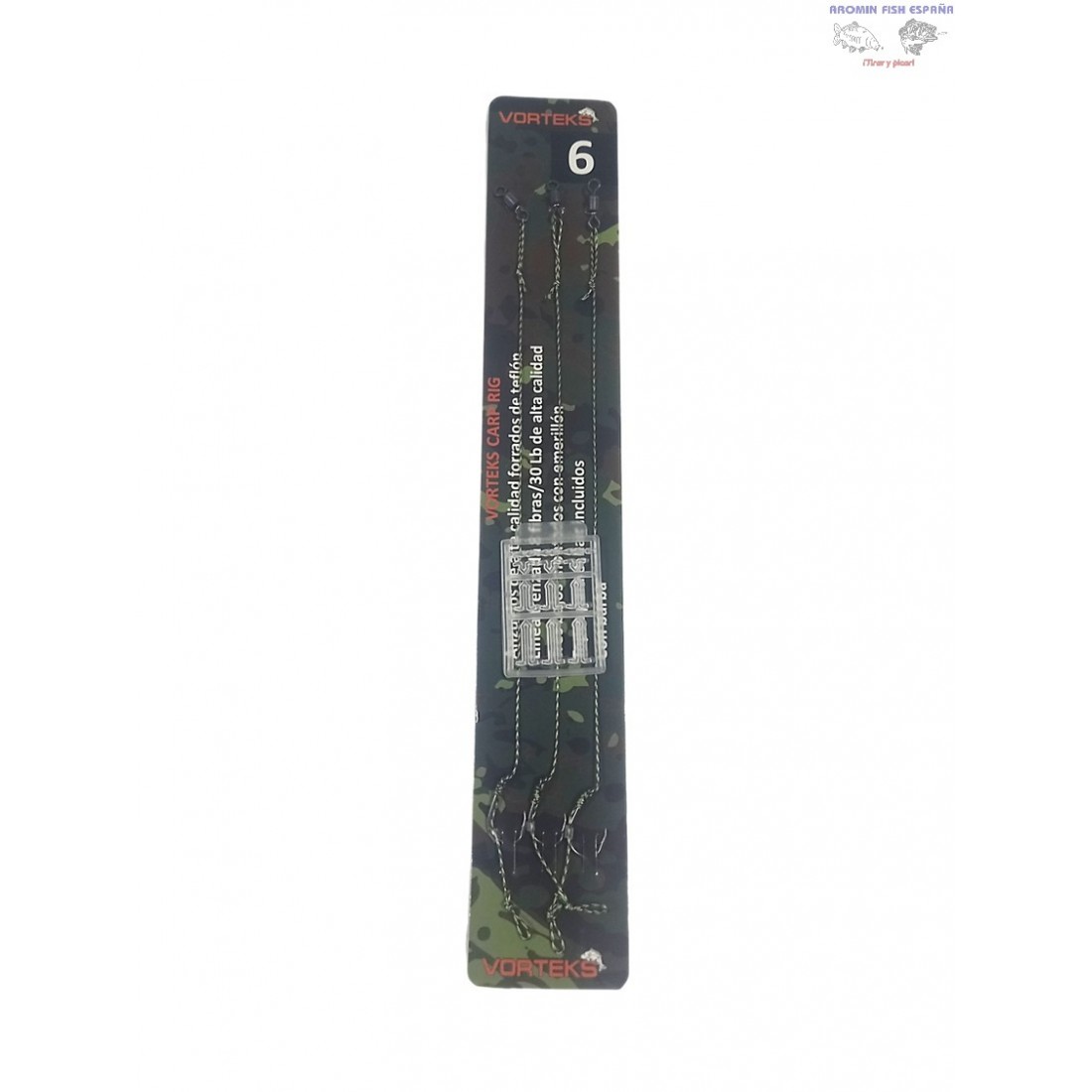 Set de 3 bajos montados de la marca Vorteks, con anzuelo y emerillón.