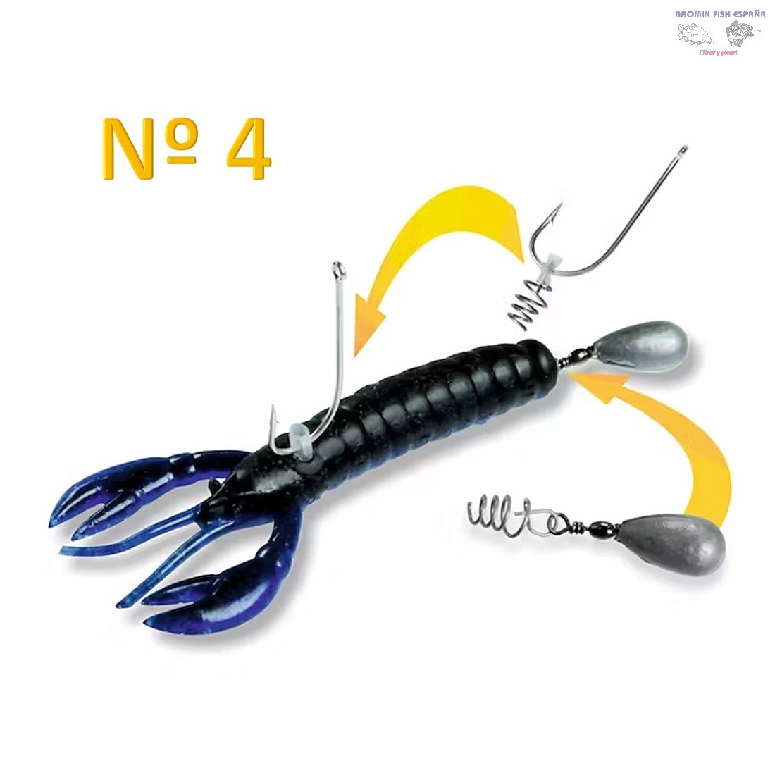 Muelles de acero inoxidable, fáciles de enroscar en el señuelo de silicona, permiten una fijación segura del anzuelo sin dañar el cebo. Ideal para Texas rig, Wacky rig y Neko rig. Muy útil para aplicar pesos, esferas atractoras o anzuelos adicionales en la posición deseada sobre el cebo.